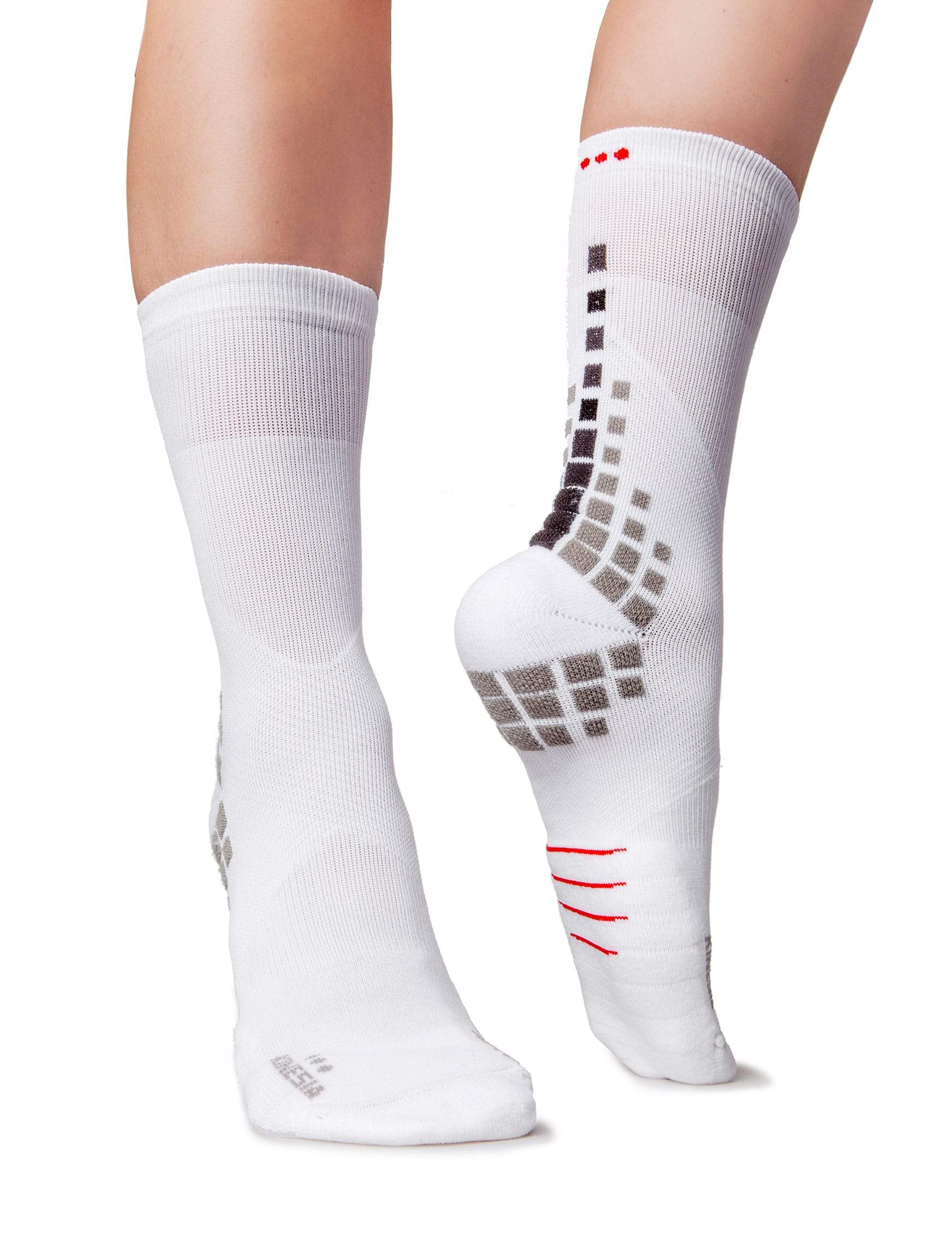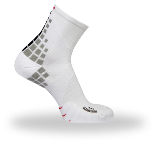 The innovative interlaced elastic structure, with highcompression (30mmHg), in the ankle-arch area, acts effectively on the ankle joints, stimulating the proprioceptive system, improving balance, stability, posture and motor control.